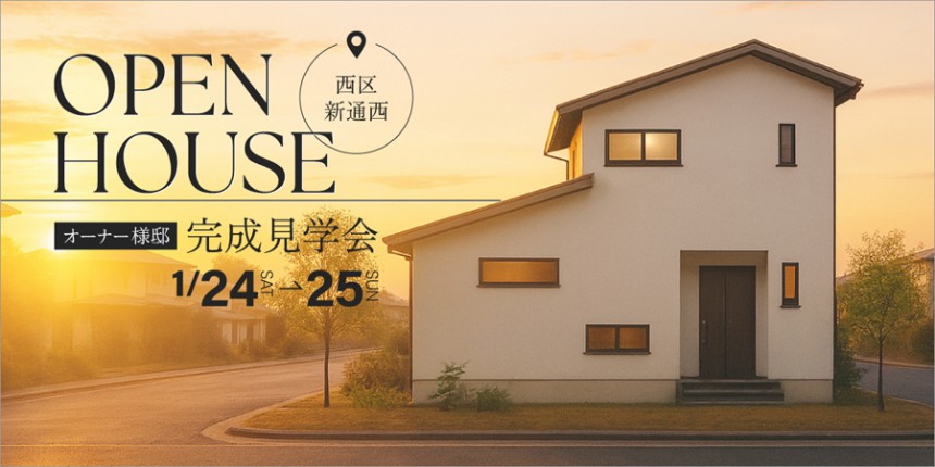 オーナーさま邸【新築完成見学会】1月24日(土)~25日(日)|西区新通西
