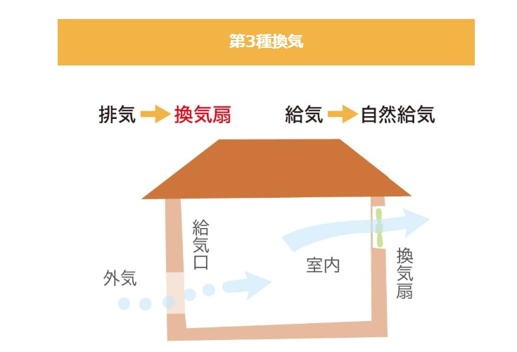 第3種換気では、外気を自然に取り入れる仕組みのため、