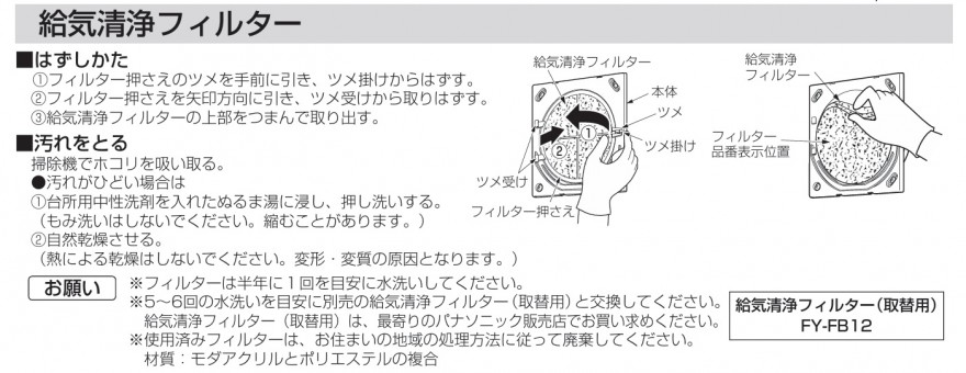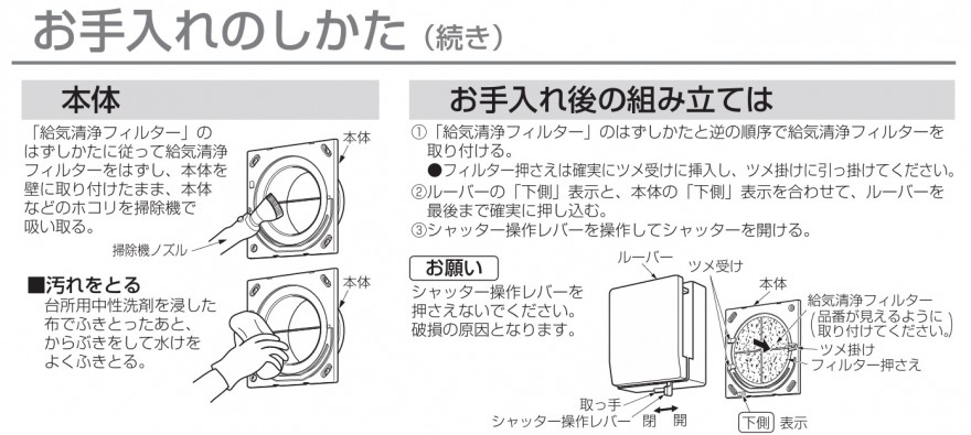 お手入れ方法引用:Panasonic「自然給気口 取扱説明書」より