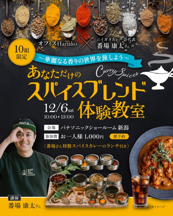 - 受付終了|オフィスHanako×番場康太さん【あなただけのスパイスブレンド体験教室】12月6日(土) 開催|10組限定