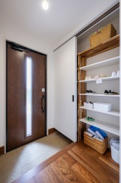 【シューズクローク】:玄関横に設け、靴やベビーカー、アウトドア用品などをスッキリ収納