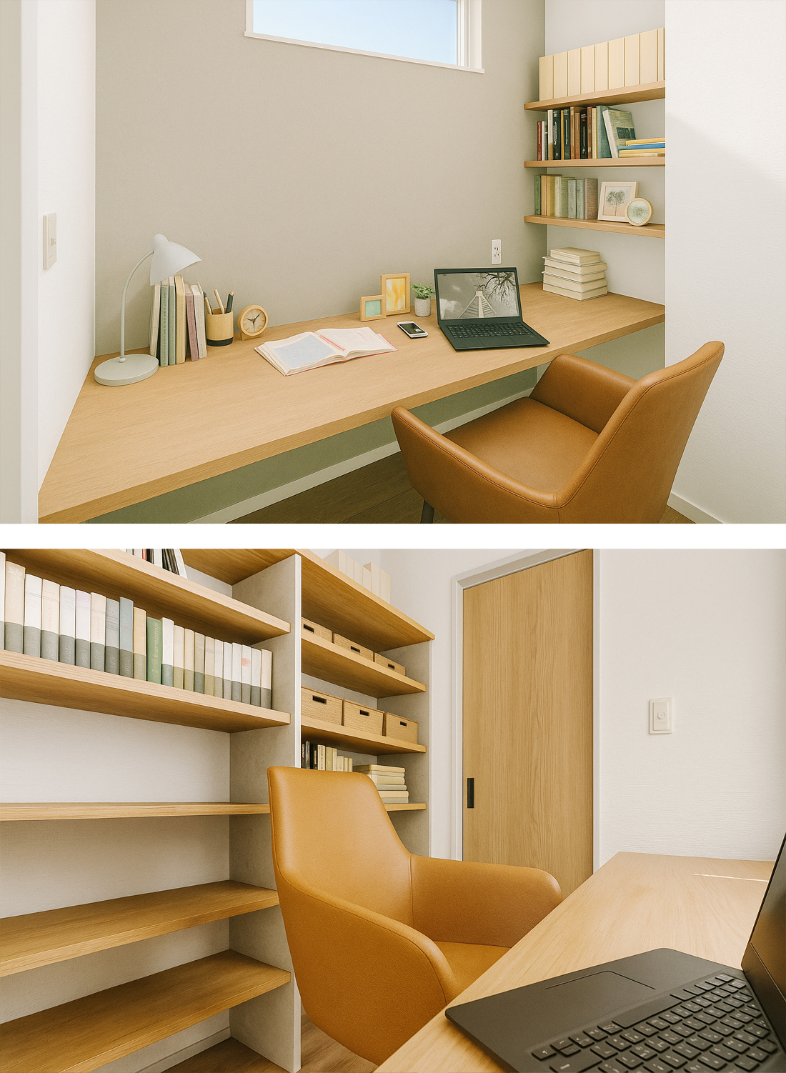 家計簿や書類整理、PCを使った在宅ワークはもちろん、お子さまの宿題を見る“ちょこっと勉強スペース”としても重宝します。