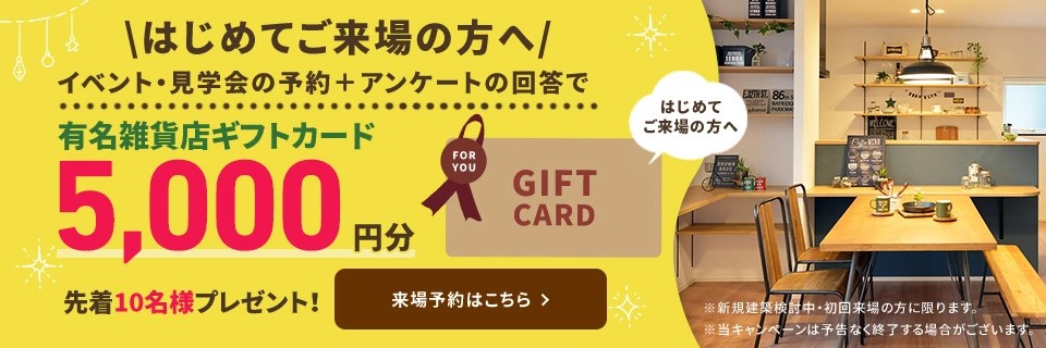 新規ご来場特典の有名雑貨店ギフトカードをプレゼント!