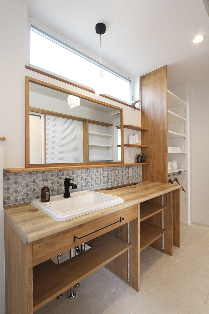 見附にアクセントタイルに包まれたママのこだわりのお家が誕生しました。