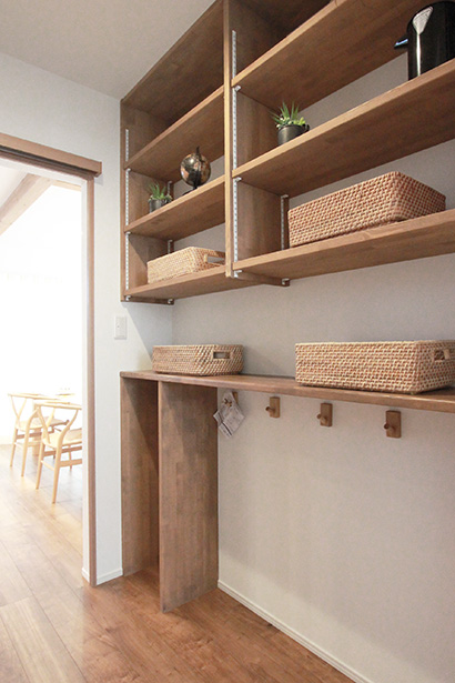 玄関からの通り抜けができるので、買い物をしてすぐにここに収納すれば楽家事に♪